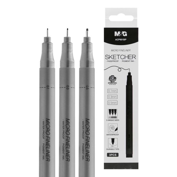 Liner M&G Sketcher, sada 3 ks (0.1/0.3/0.5 mm), čierny