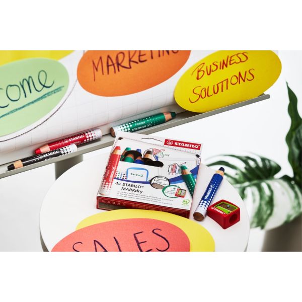 STABILO MARKdry je suchý popisovač s hrubou farebnou tuhou na biele tabule a flipcharty.