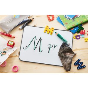 - Píše na papier a hladké povrchy, z ktorých ich dokážete strieť na sucho alebo na mokro bez zanechania stôp.