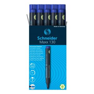 Permanentný popisovač - modrý. Píše na väčšinu povrchov - píše na papier, gumu, kožu, plasty, kovy. Odolá vode, oteru, poveternostným vplyvom. Atrament na alkoholovej báze. Valcový hrot so šírkou stopy 2 mm.
