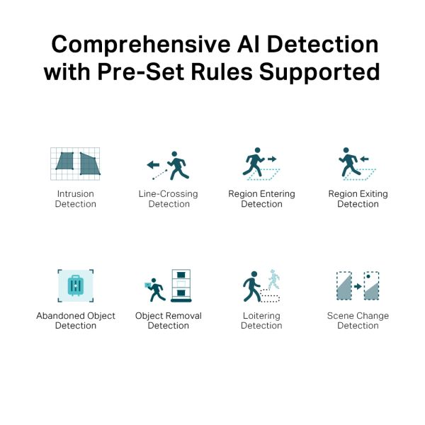 Kamera VIGI s podporou algoritmov umelej inteligencie ponúka inteligentnejšiu detekciu. Budete dostávať upozornenia, keď niekto prekročí hranicu, vstúpi do nastavenej oblasti, prekáža kamere alebo odstráni/opustí objekty.