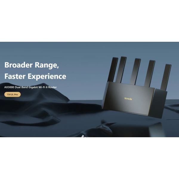 Tenda TX12L Pre AX3000 WiFi 6 Mesh Router, 1x GWAN, 3x GLAN, IPv6, 5x 6dBi, WPA 3, CZ app 75011990