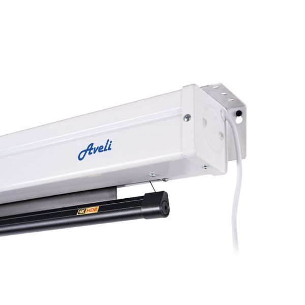 Nástenné elektrické projekčné plátno AVELI PREMIUM s diaľkovým ovládaním je možné inštalovať na stenu alebo strop. Vhodné pre projektory so svetelným výkonom 4000 ANSI a vyššie. Využitie business alebo Home Cinema. Vďaka špeciálnemu šedému povrchu vynikajú všetky farby.