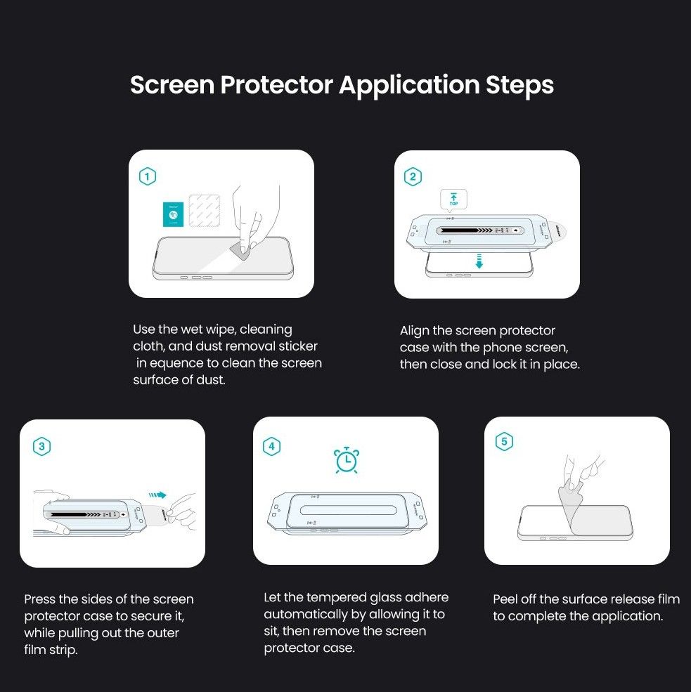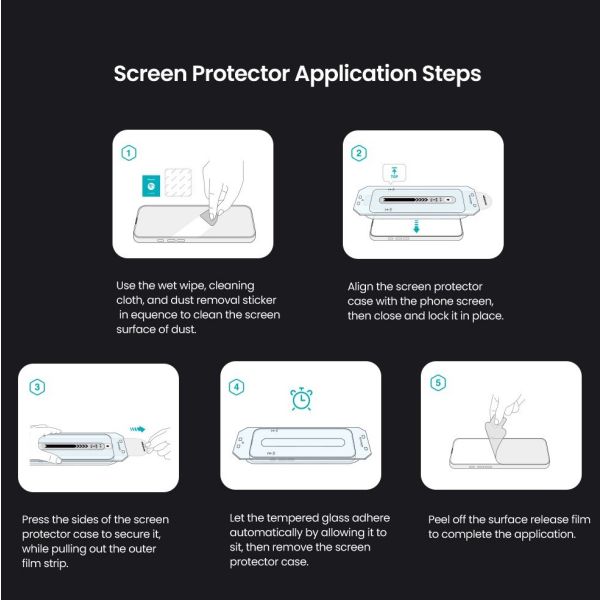 Vďaka nemu môžete ľahko nainštalovať tvrdené sklo na displej bez rizika zlého umiestnenia alebo tvorby vzduchových bublin.