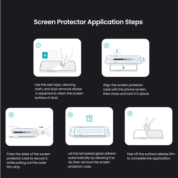 Vďaka nemu môžete ľahko nainštalovať tvrdené sklo na displej bez rizika zlého umiestnenia alebo tvorby vzduchových bublin.