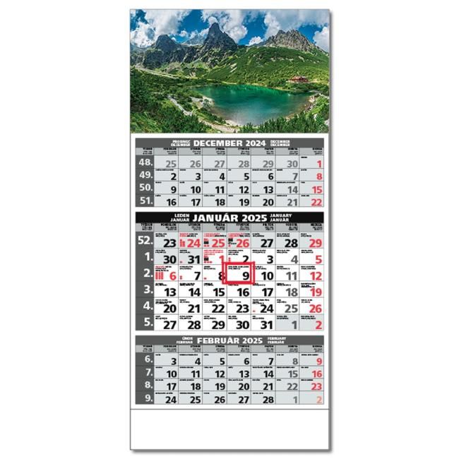 Plánovací kalendár s 3-mesačným kalendáriom s menami v SK + CZ, názvy mesiacov a dní v SK, CZ, EN, DE a HURozsah: 12listovKalendárium: SK/CZRozmer: Rozmer: 295 x 663