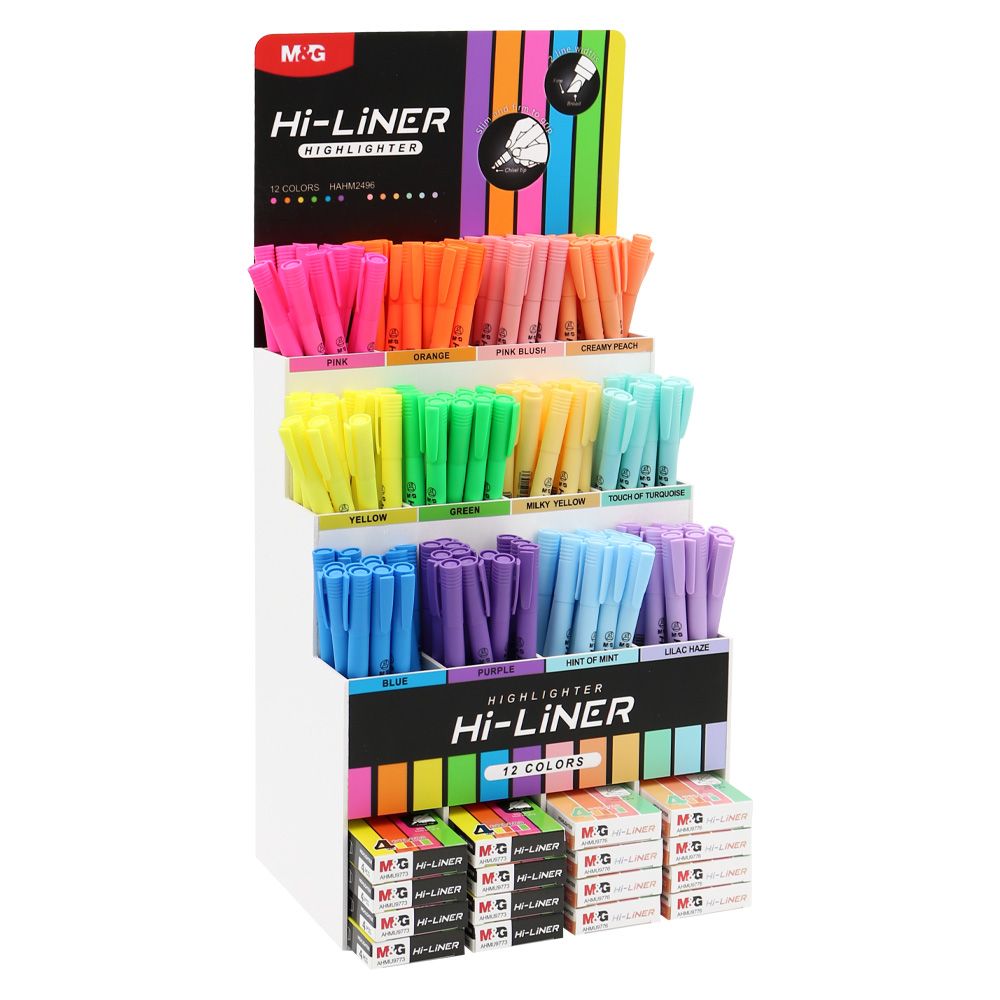 Zvýrazňovač kategórie AHM, je zaraďovaný do obojstranných. Jedna strana píše žltou farbou, druhá strana píše oranžovou farbou. Zvýrazňovač má zrezaný hrot. Jeho šírka je približne 1 až 4 mm.