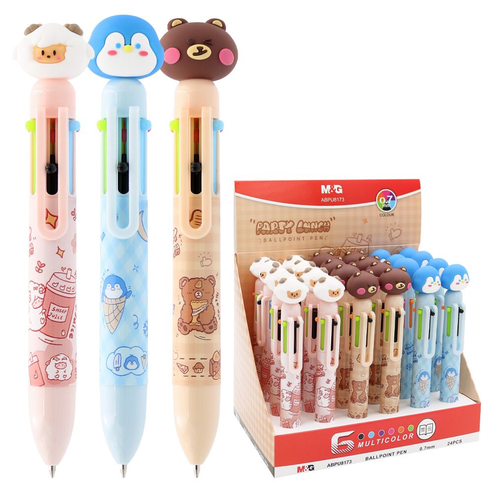 Multifunkčné guľôčkové pero pre deti 6-farebné v 3 dizajnoch.