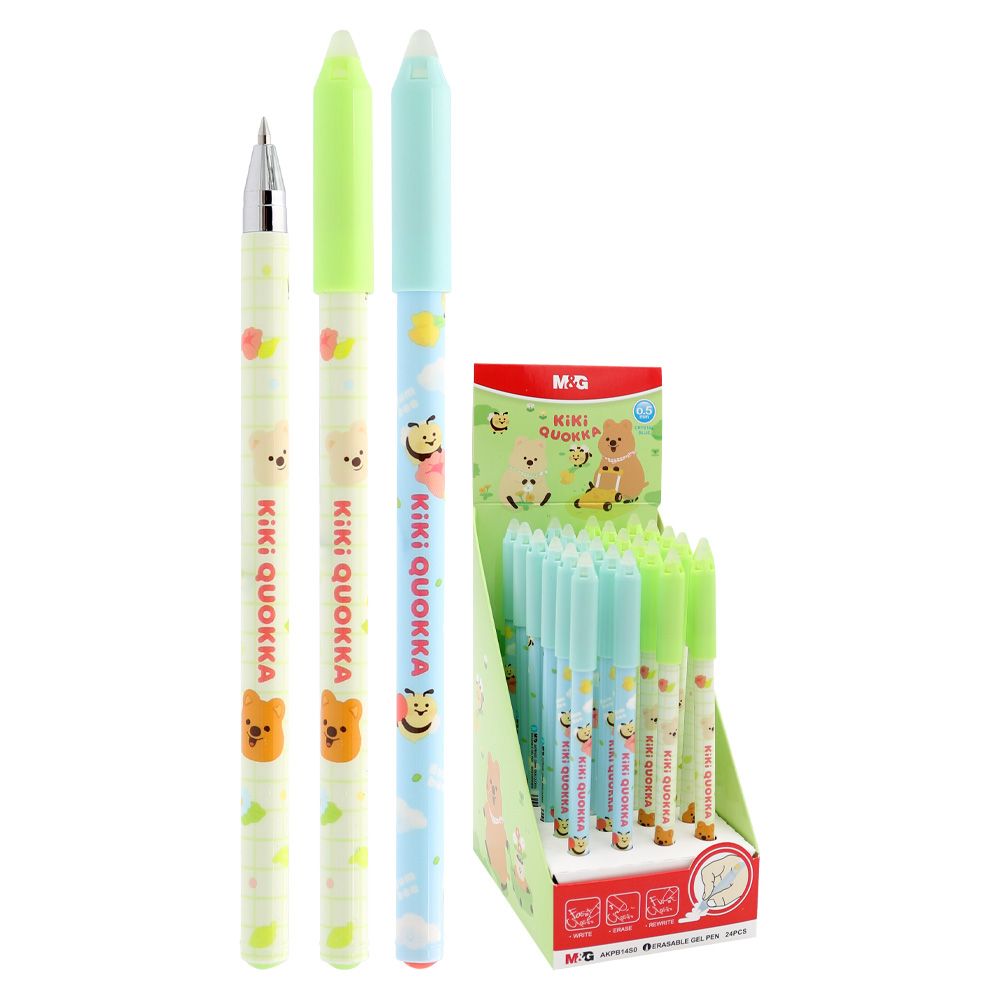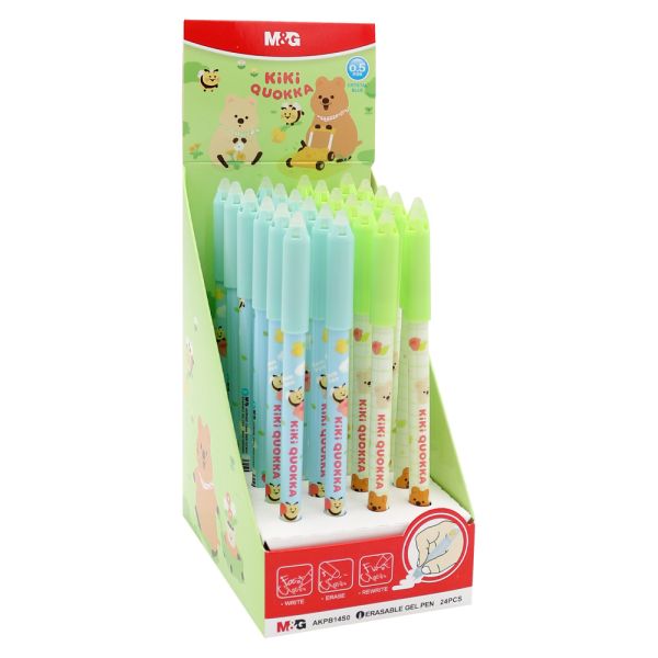 Gumovací roller od značky M&G. Predáva sa v troch farebných variantoch. Farba atramentu je modrá. Stopa hrotu je 0,5 mm. Na vrchnáku je pridaná guma, aby ste mohli opraviť chyby. Nie je vhodné na oficiálne dokumenty.
