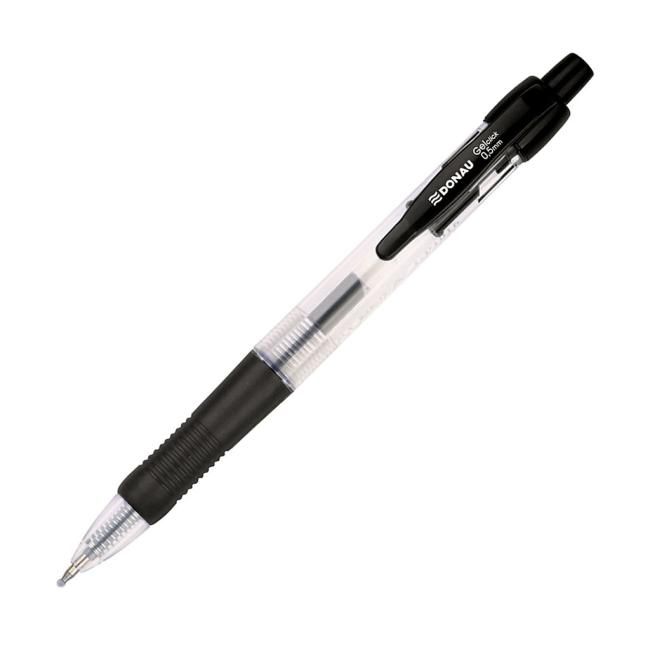 Klikací roller s plastovým klipom a gumeným úchytom vo farbe tuhy. Plnený netoxickým pigmentovým vode odolným atramentom. Telo z plastu, guľôčka 0,5 mm, šírka stopy 0,25 mm, dĺžka stopy 400 m. Väčšie balenie 12 ks. Náhradná náplň obj. kód DO734601.