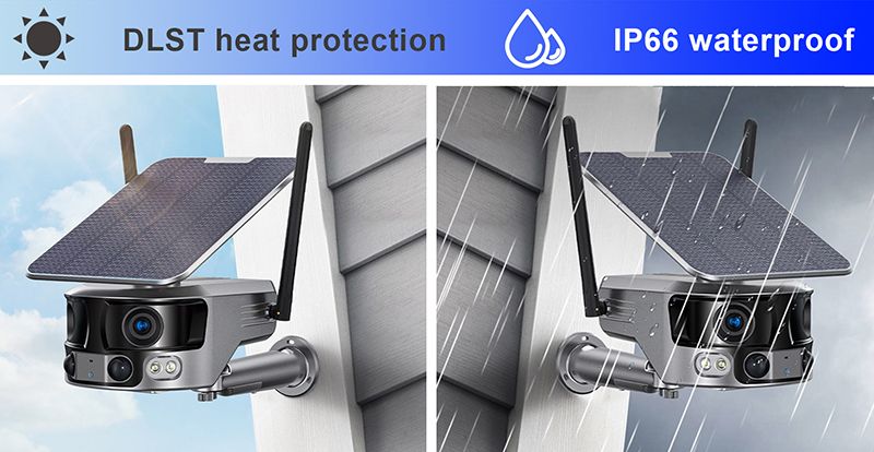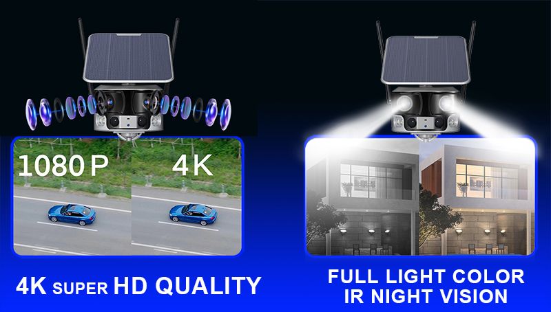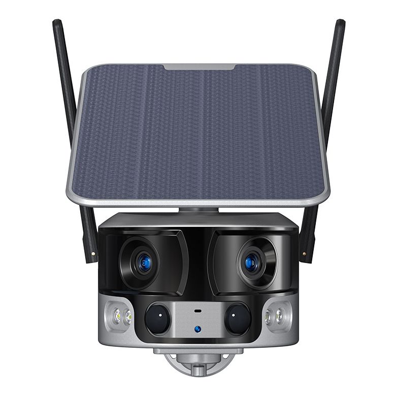 solárne napájanie · rozlíšenie 4K (4096*2160) · ultraširoký záber 180° · zložený obraz dvoch objektívov · ochrana IP66 · PIR snímač · detekcia ľudského pohybu · nočné infračervené a farebné videnie…