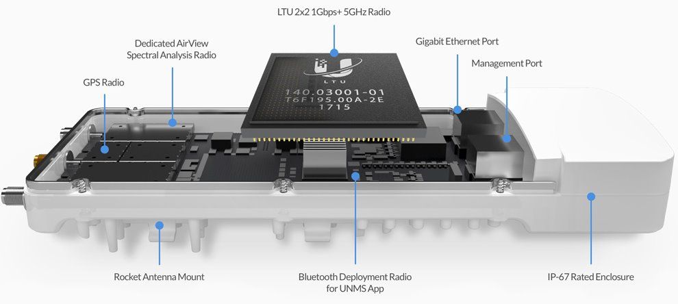 Revolučný procesor s označením airFiber LTU IC dokáže spracovať cez 2 milióny+ paketov za sekundu pri 1Gbps+ (TDD) reálneho dátového toku v bezlicenčnom pásme 5GHz pri 1024QAM (v plánovanom firmvéri je počítané s podporou až 4096QAM s ešte vyššou).