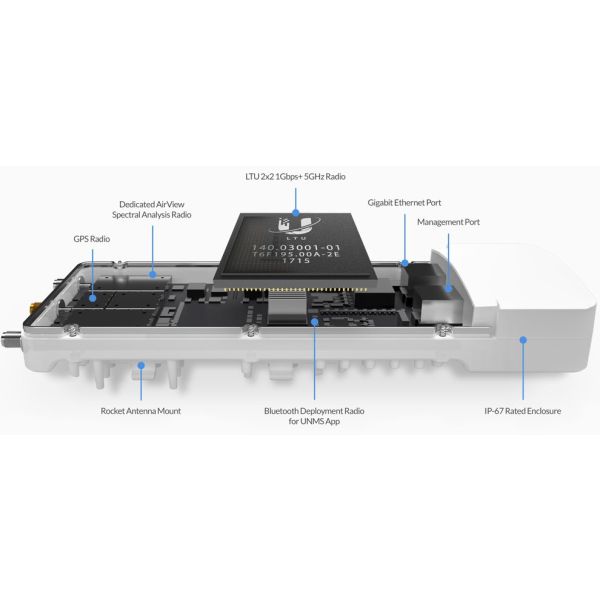 Medzi ďalšie kľúčové vlastnosti môžeme zaradiť 2x Gigabit LAN, kedy jeden port je určený iba pre manažment, časová synchronizácia cez GPS, dedikovaný spektrálny analyzér, vysoká odolnosť proti vode (IP67) a nastaviteľná šírka kanálu 10/20/30/40/50/60/80 a 100MHz.