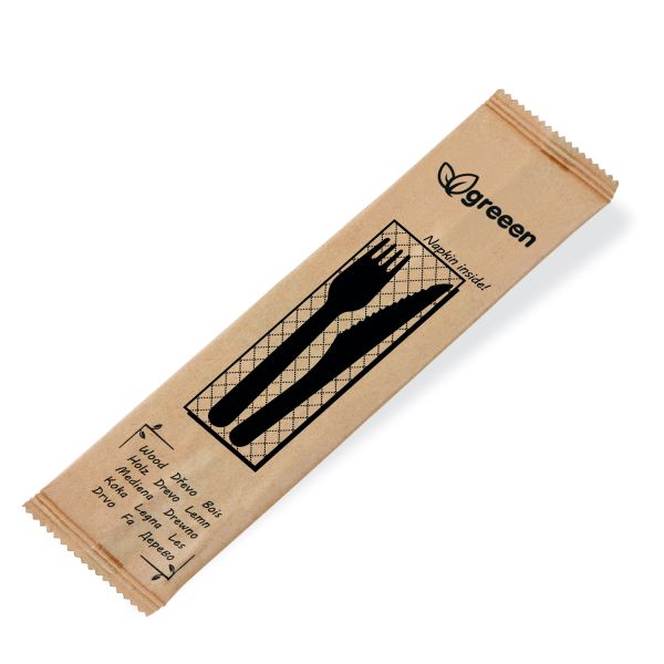 Príborová sada (drevo FSC 100%) nôž-vidlička+obrúsok [60 sád]