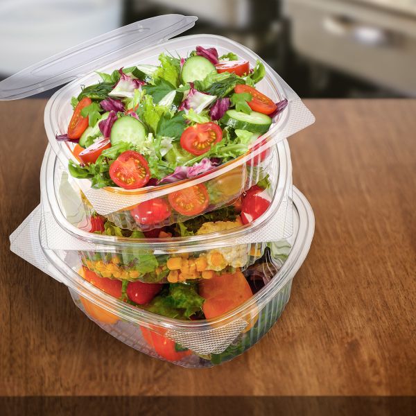 Miska (rPET) s viečkom oválna priehľadná 375ml [50 ks]