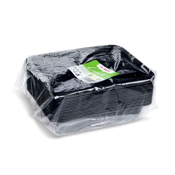 Menu misa (PP) Reware Lunch opakovane použiteľná 3dielná čierna 227 x 178 x 49 mm [20 ks]