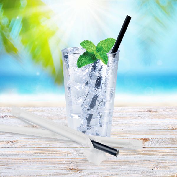 Slamka papierová čierna `JUMBO` Ø8mm x 25cm jednotlivo balená [100 ks]