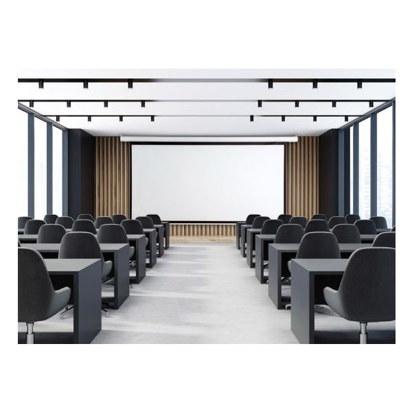 Žiarivý matne biely povrch plátna zaručuje ostrý, podrobný obraz, ktorý zreteľne uvidia všetci diváci. Dá sa ľahko zasunúť do puzdra, aby bolo chránené pred poškodením, alebo uložené, keď nie je používané. Doplnkové držiaky umožňujú inštalovať plátno pred popisovaciu tabuľu alebo ho skloniť smerom k divákom. 1500 × 1138 mm.