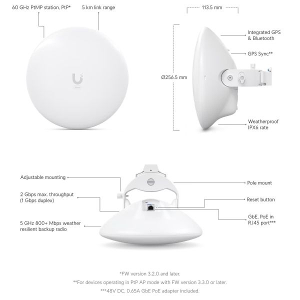 Môže sa pripojiť k Wave AP a poskytovať celkovú priepustnosť 2Gbps (1Gbps duplex). Wave Nano je vybavený vysoko výkonným 5GHz záložným pásmom, ktoré zaisťuje neprerušované pripojenie, a Bluetooth pre zjednodušenie nastavenia prostredníctvom aplikácie UISP® Mobile.