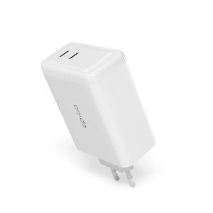 Nabíjačka do siete - s technológiou GaN, maximálny výkon 100 W, výstup 2x USB-C, technológia rýchleho nabíjania USB Power Delivery, prepäťová ochrana, USB-C na USB-C kábel v balení, farba biela
