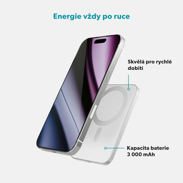 Kapacita 3 000 mAh: Poskytuje spolehlivé záložné nabíjanie, dostatočné na dobitie iPhonu 16 Pro až na 50 %.*