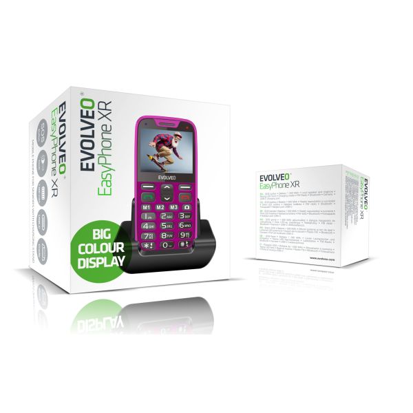 • EVOLVEO EasyPhone XR, mobilný telefón pre seniorov s nabíjacím stojanom, ružová (PartNo: EP-601-XR-PK)