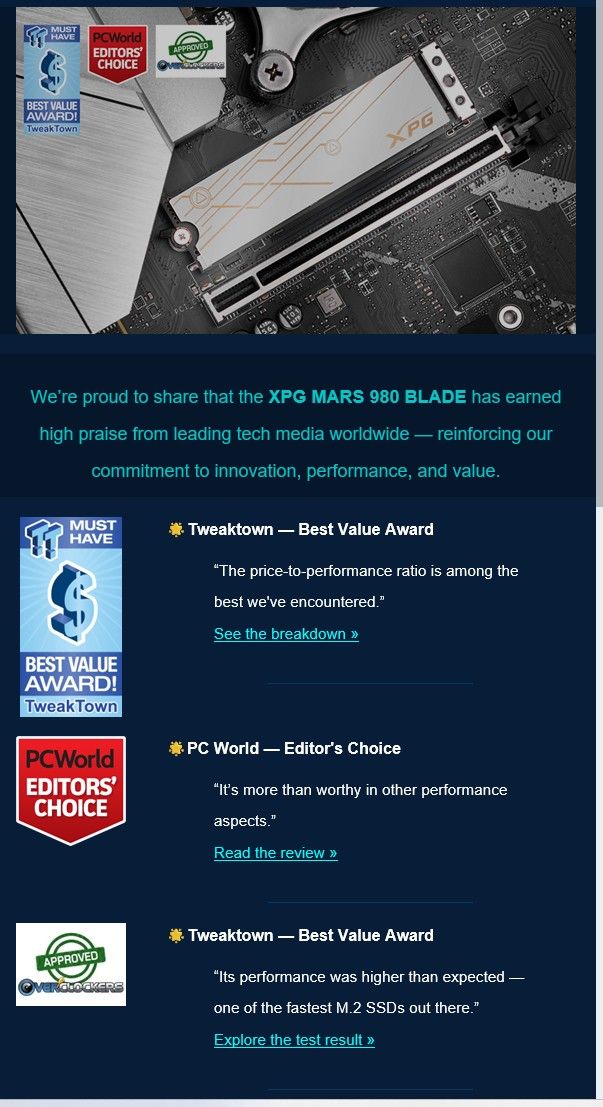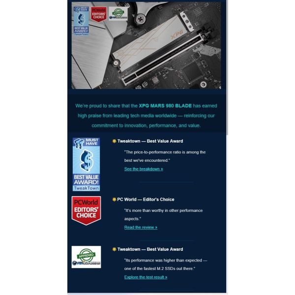 Recenze: https://www.overclockers.com/adata-xpg-mars-980-blade-2tb-nvme-pcie-5-0-x4-ssd-review/