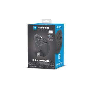 Natec Euphonie Pro je jedna z najmodernejších vertikálnych kancelárskych myší, navrhnutá pre pohodlnú prácu v ergonomických podmienkách. Myš zaručuje nadštandardné bezdrôtové pripojenie, špičkový senzor, širokú škálu funkcií a tvar, ktorý pomáha udržiavať zdravie zápästia. Navyše je vybavená tichými spínačmi, ktoré výrazne zvyšujú komfort práce, eliminujú hluk a umožňujú diskrétnejšie používanie zariadenia v kancelárii alebo doma, čo je dôležité najmä pri dlhodobom používaní.