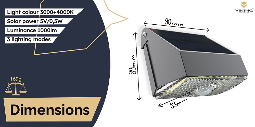 Solárne LED svetlo Viking SR11 ponúka kompaktné, ale výkonné riešenie pre vonkajšie osvetlenie s dôrazom na bezpečnosť a energetickú úspornosť. Vďaka svietivosti až 1000 lm, dvom teplotám svetla (3000 K + 4000 K) a pohybovému senzoru je vhodné na osvetlenie vstupov, chodieb, garážových vjazdov či záhradných ciest.