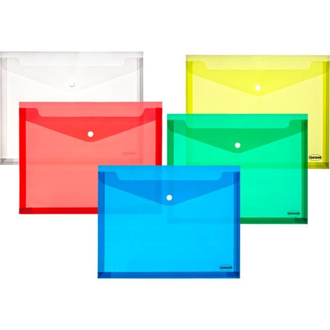 Transparentný plastový obal na spisy s cvokom, formát A4, PP hrúbky 0,18mm, rôzne farby, max. na 250 listov.