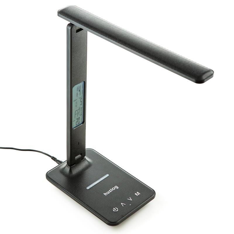 Stolová LED lampička Huslog čierna s displejom a bezdrátovou nabíjačkou KAT00073