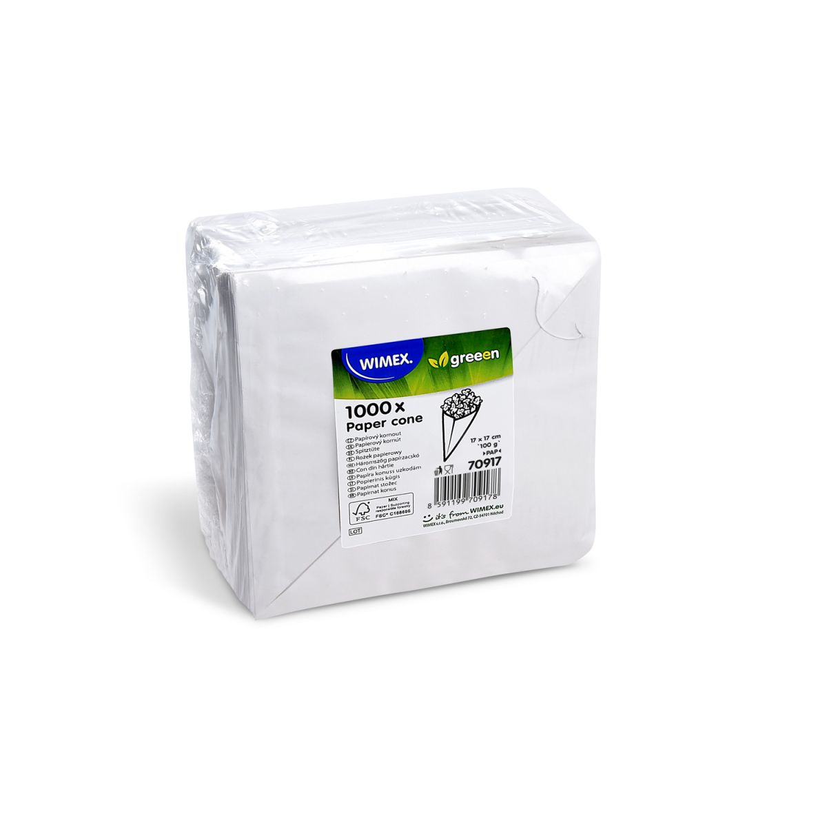 Papierový kornút biely 17 x 17 cm `100g` viazaný [10 x 100 ks]