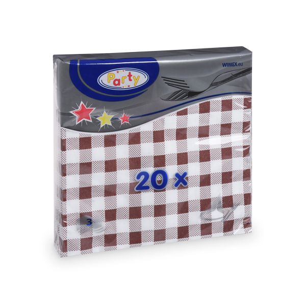 Obrúsok (PAP) 3vrstvý Karo hnedý 33 x 33 cm [20 ks]