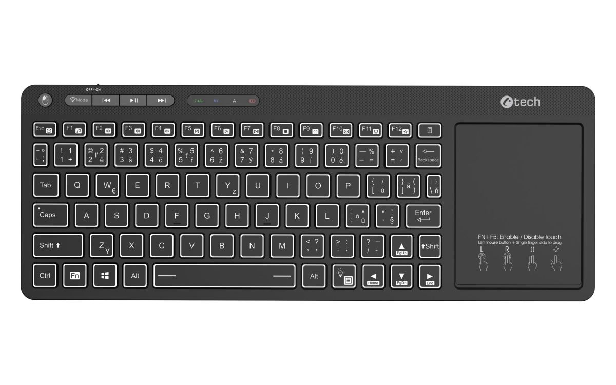 C-TECH WLTK-03 – Elegantná bezdrôtová klávesnica s touchpadom, podsvietením a maximálnym komfortom