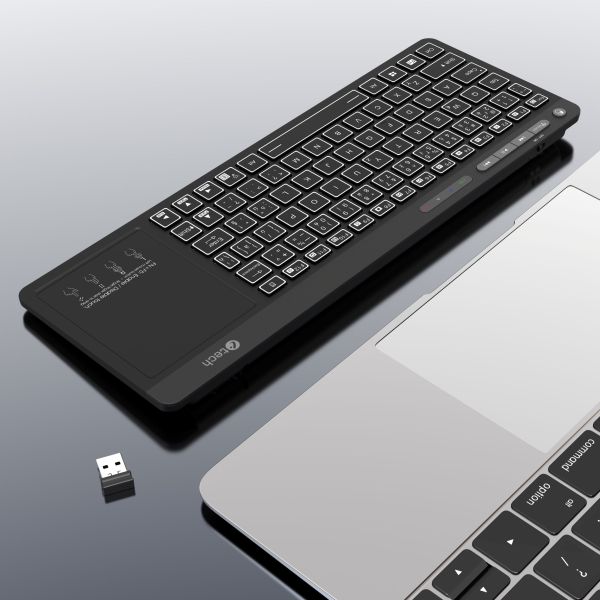 Klávesnica obsahuje plnohodnotný touchpad, ktorý úplne nahrazuje externú myš. Môžete tak ovládať kurzor, klikanie aj základné gestá priamo z klávesnice – čo je praktické najmä pri ovládaní inteligentnej TV, tabletu alebo pri práci v obmedzenom priestore.