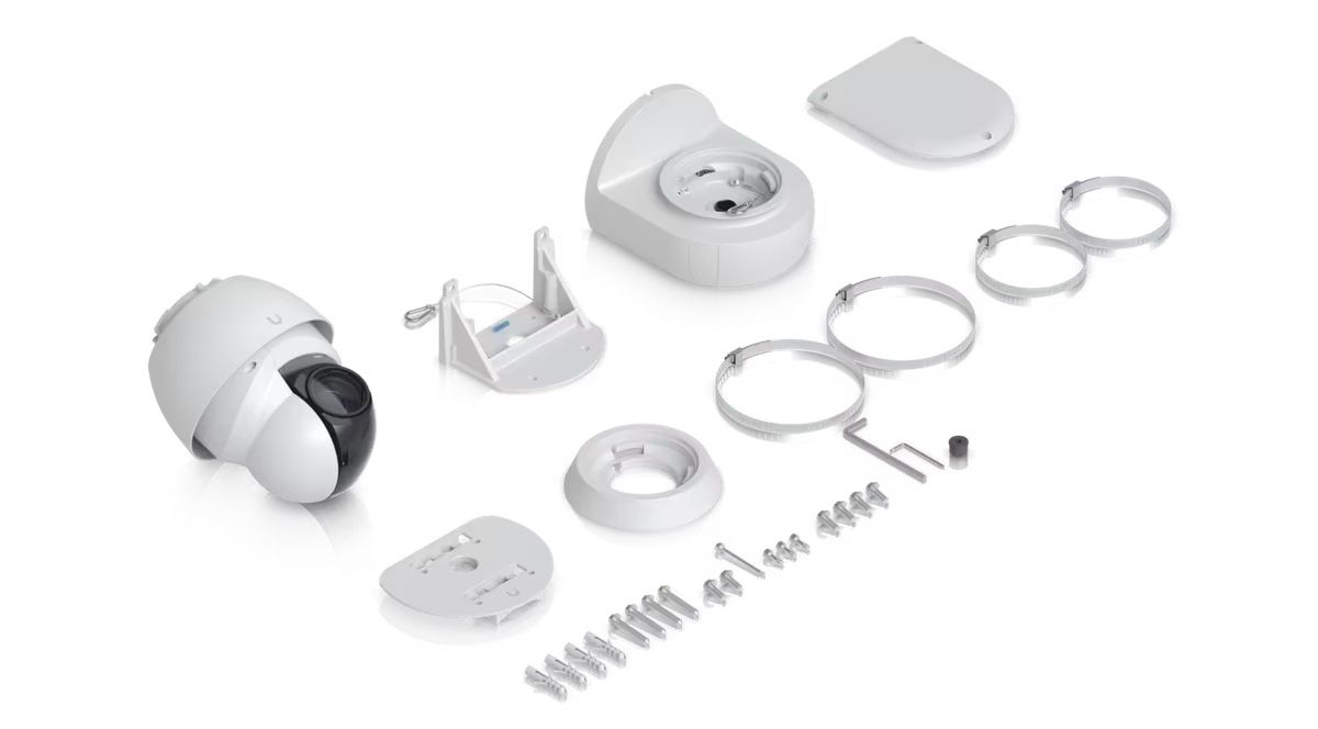 Jednou z bezprostredných výhod radu kamer UniFi AI je rozmanitosť dodávaného montážneho hardvéru. Kamera UniFi Protect PTZ nevyžaduje na začatie nasadenia žiadny ďalší nákup.