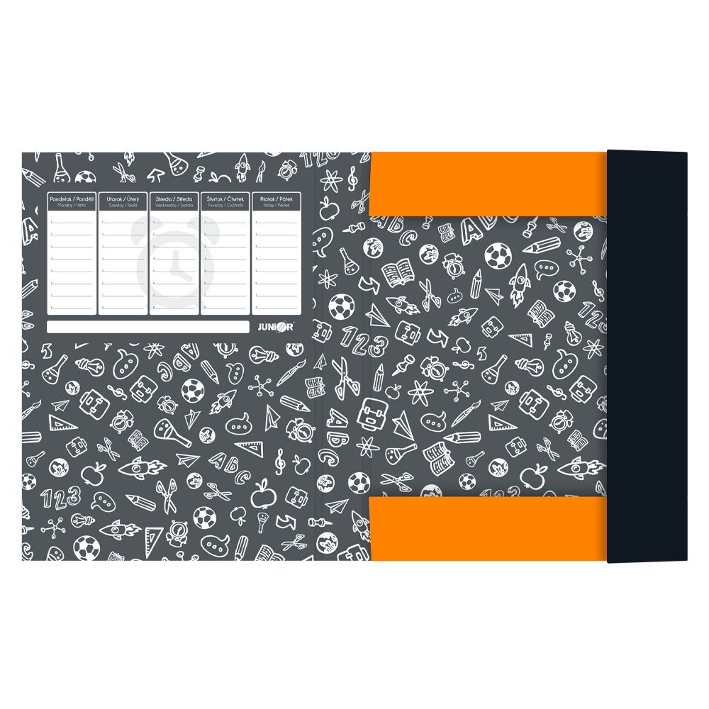 Box na zošity formátu A5 Jumbo so zatváraním na gumičku. Nevyhnutná súčasť vybavenia každého školáka na uloženie zošitov a kníh. vnútorné tri chlopne chránia zošity a knihy proti poškodeniu …