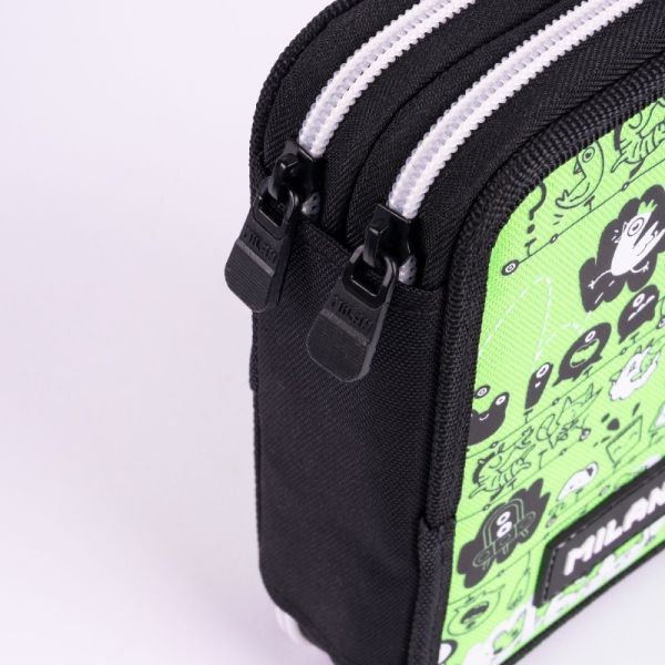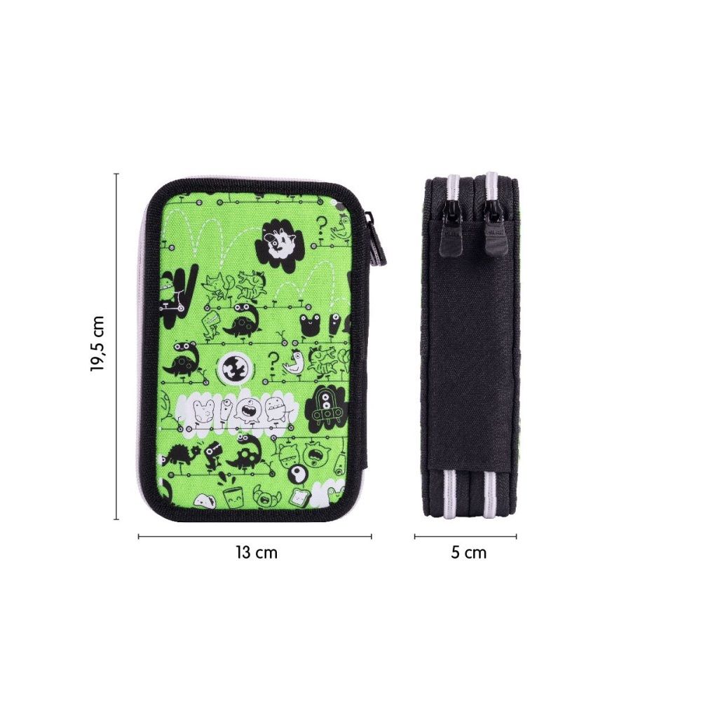 1 - zipsový peračník oválneho tvaru vo vnútri obsahuje: chlopňu s 5 pútkami na farbičky, fixy, ceruzky veľký priestor pre volne ložené školské a písacie potreby Materiál: Polyester