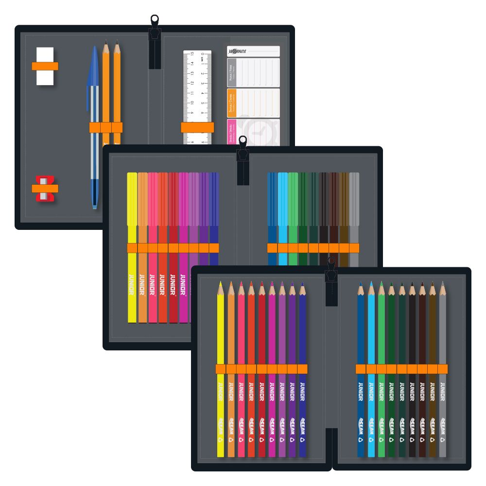 Prázdny, 1-poschodový peračník JUNIOR s rozvrhom hodín a malou násobilkou. Vlastnosti: ľahko umývateľný vonkajší povrch zosilnené prešívané steny vo vnútri peračníka 2 vyklápacie chlopne poskytujú veľa priestoru na udržanie poriadku materiál: 100% Polyester Obsahuje: 26 pútok na vloženie farbičiek, ceruziek, pier pútko na pravítko, orezávatko a gumu 2x priehľadné vrecko s rozvrhom hodín a násobilkou