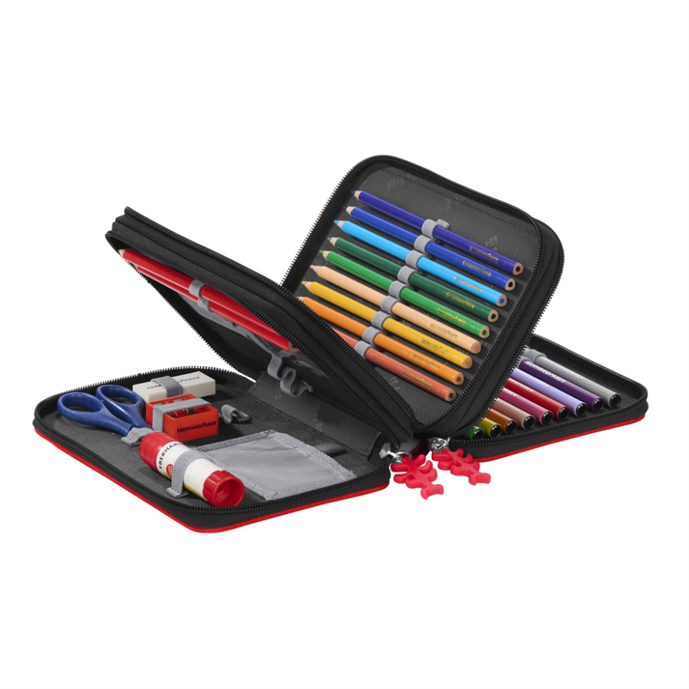 31-dielny plátený peračník s dvojitou klopou JUNIOR: ľahko umývateľný povrch zosilnené steny poskytuje veľa priestoru na udržanie poriadku Materiál: Polyester