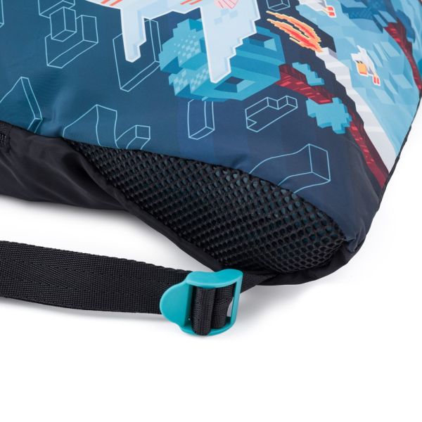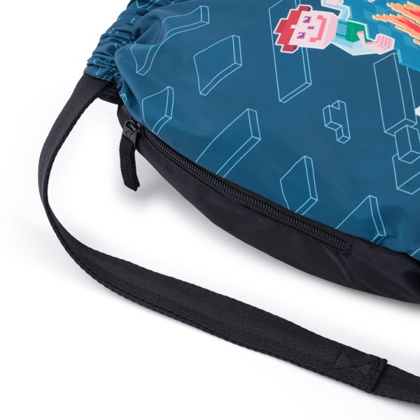 Textilné vrecko na prezuvky s farebnou potlačou na prednej strane, so zarážkami na zaťahovanie na oboch stranách. Z rovnakej kolekcie v ponuke peračník, obal, box na zošity a pamätník. Materiál: Polyester. Rozmer: 40x32 cm.