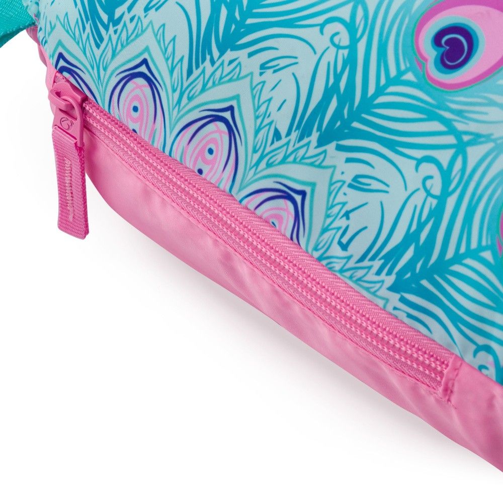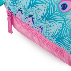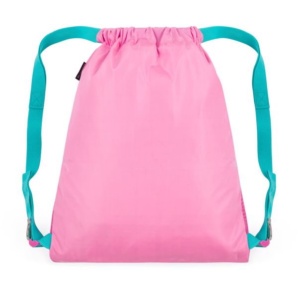 Textilné vrecko na prezuvky s farebnou potlačou na prednej strane, so zarážkami na zaťahovanie na oboch stranách. Z rovnakej kolekcie v ponuke peračník, obal, box na zošity a pamätník. Materiál: Polyester. Rozmer: 40x32 cm.