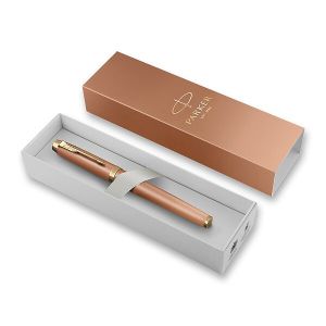 Roller PARKER IM Dark Espresso CT. Parker IM je ideálny partner s neobmedzenými možnosťami. Je elegantný aj vysokoprofesionálny a spoľahlivý. Ponúka odolný hrot z ušľachtilej nerez ocele, širokú paletu pevedení inšpirovaných tradíciou značky Parker, užívateľské pohodlie aj maximálnu výkonnosť. Brúsené mosadzné telo a vrchnák s lakovanou povrchovou úpravou. V kombinácii s doplnkami pokovovanými chrómom, s leštenou úpravou. Hrot z ušľachtilej nerez ocele.