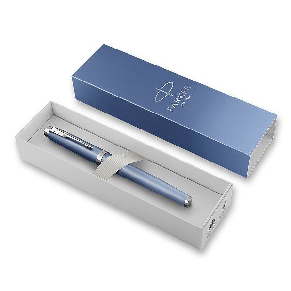 Roller Parker IM Writing Rituals Blue CT má telo a vrchnák pokrytý saténovo modrým metalickým lakom.V kombinácii s doplnkami s doplnkami pokovovanými chrómom. nasadzovacie viečko čierna náplň, hrot…