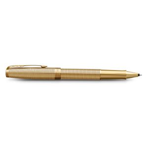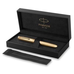 Guľôčkové pero Parker Sonnet SE Ciselé GT má telo vyrobené z mosadze a zdobené jemným, lešteným vzorom Ciselé v zlatej farbe. Úchopová časť a klip sú z vysoko leštenej mosadze so zlatou povrchovou úpravou.