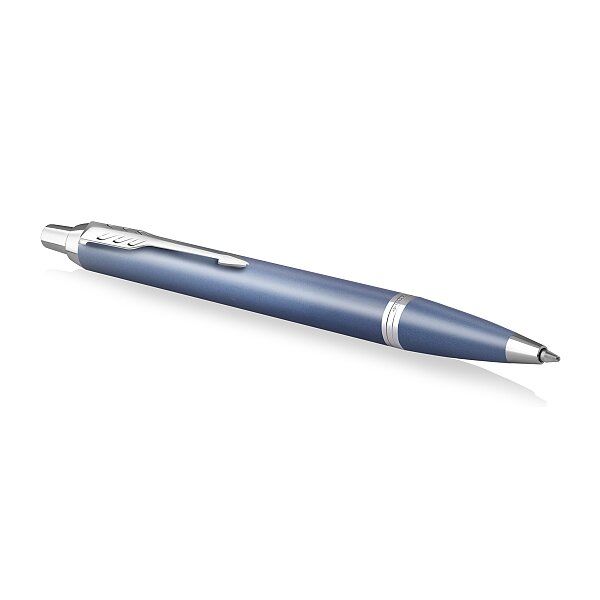 Guľôčkové pero Parker IM Writing Rituals Blue CT má telo pokryté saténovo modrým metalickým lakom.