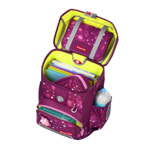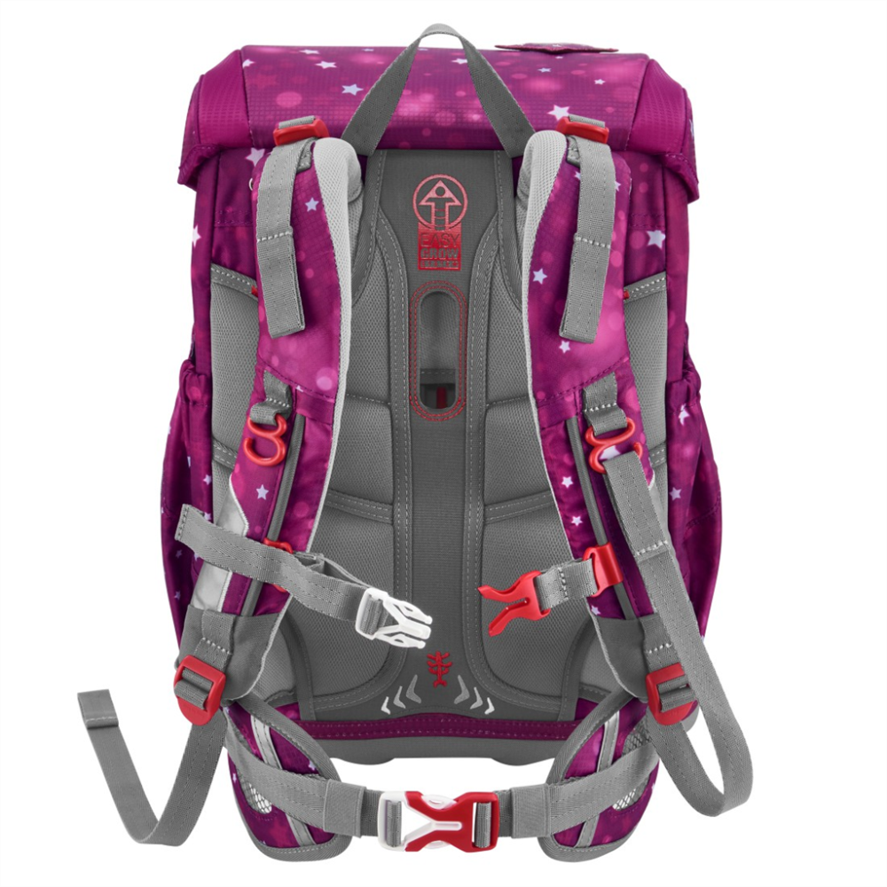 - možnosť plynulého výškového nastavenia ramenných popruhov pomocou otočného mechanizmu vo vnútri aktovky, zaisťuje presné nastavenie ramenných popruhov priamo na chrbte dieťaťa