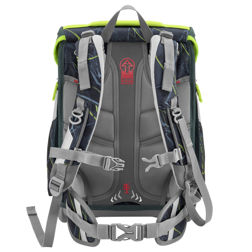 - možnosť plynulého výškového nastavenia ramenných popruhov pomocou otočného mechanizmu vo vnútri aktovky, zaisťuje presné nastavenie ramenných popruhov priamo na chrbte dieťaťa