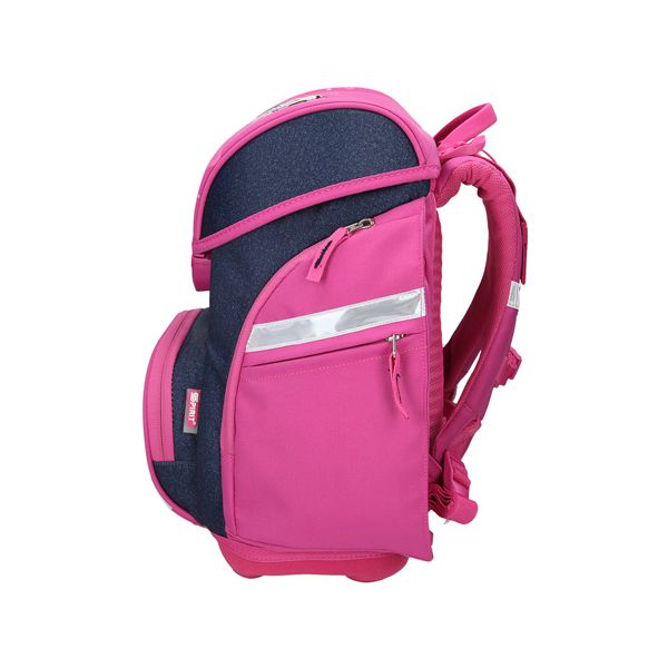 Sada obsahuje: školskú tašku, vrecko na prezúvky, naplnený peračník, puzdro na perá a peňaženku.