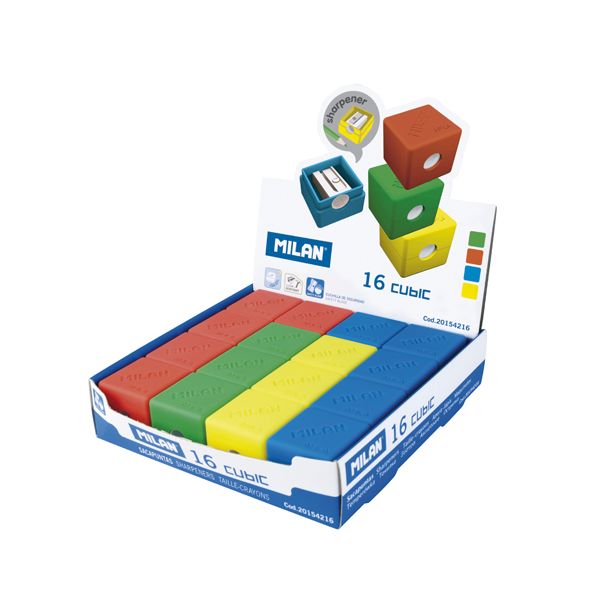 Dizajnové strúhadlo MILAN Cubic s odpadovou nádobkou. Povrch strúhadla má špeciálnu pogumovanú úpravu.vhodné hlavne pre obyčajné ceruzky. Nôž je vybavený bezpečnostným šrúbom aby sa nedal jednoducho odmontovať. Dodávané v štyroch jasných farbách. Výber farby prosím uviesť do poznámky pri objednávke tovaru.